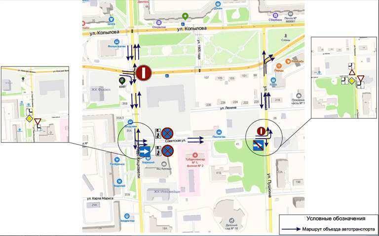 В Красноярске критически изменится схема движения по ул.: Копылова, Советская, Красной Армии и Менжинского. Причина — модернизация тепловых сетей.