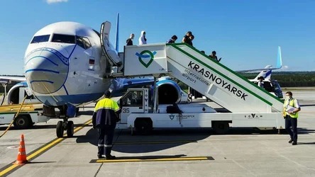 В аэропорту Красноярска приземлился самолет, на носу которого нарисована маска для защиты от вируса. Фотографии лайнера появились в соцсетях.