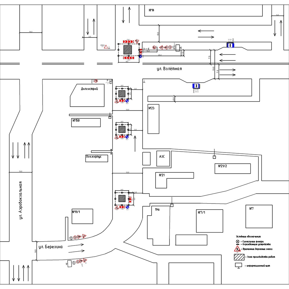 На время ремонта изменится схема движения транспорта в районе Междугороднего автовокзала: личным автомобилям разрешат двухсторонний проезд по Аэровокзальной. Также на Взлётной в районе дома № 18 будет частично перекрыта крайняя левая полоса.