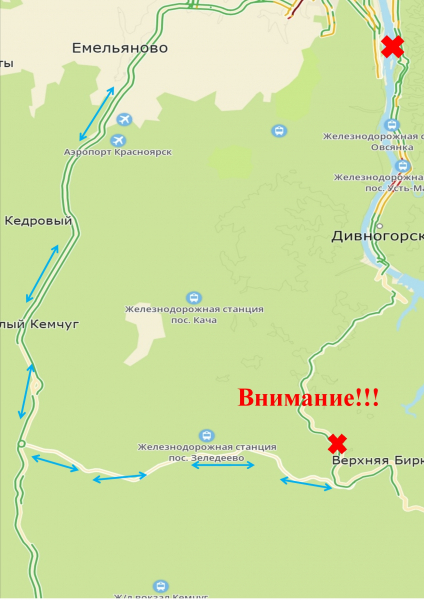 Госавтоинспекторы рекомендуют объезжать этот участок по автодороге Р-255 «Сибирь». Выезжать из Красноярска в сторону Абакана следует в сторону поселка Емельяново, а водителям, двигающимся в обратном направлении, необходимо проезжать через кольцевую развязку в районе п. Зеледеево.