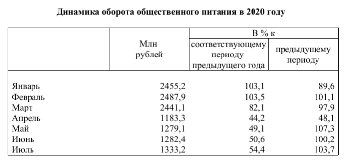 Вероятно это связано с тем, что все предприятия общепита края в конце марта закрылись из-за пандемии COVID-19. Те, кто сумел переориентировать свой бизнес на доставку и торговлю навынос (а после открыли летние террасы), и сформировали итоговый восходящий тренд. Остальные ждали разрешения вернутся в строй, которое получили совсем недавно.