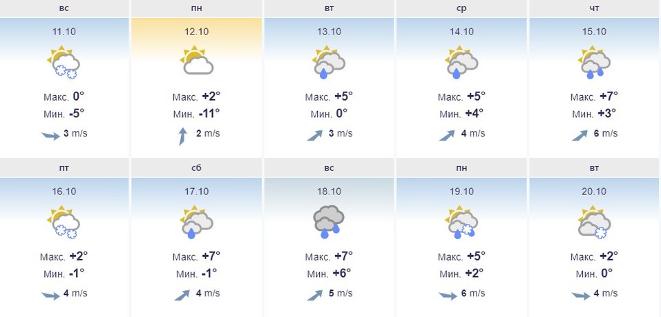 В понедельник 12 октября в краевом центре ночью –11 оС, днем +2 оС, облачность с прояснениями, без осадков.