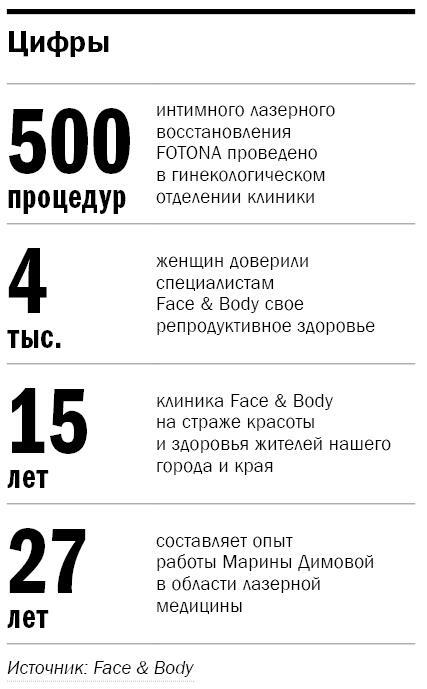 Услуги лазерной медицины, в том числе интимное восстановление, предлагает красноярская клиника эстетической и лазерной косметологии и гинекологии Face & Body. Процедура востребована у женщин самого разного возраста. Общую информацию о технологии можно посмотреть на сайте клиники, а конкретные вопросы уже обсудить с доктором на личной консультации.