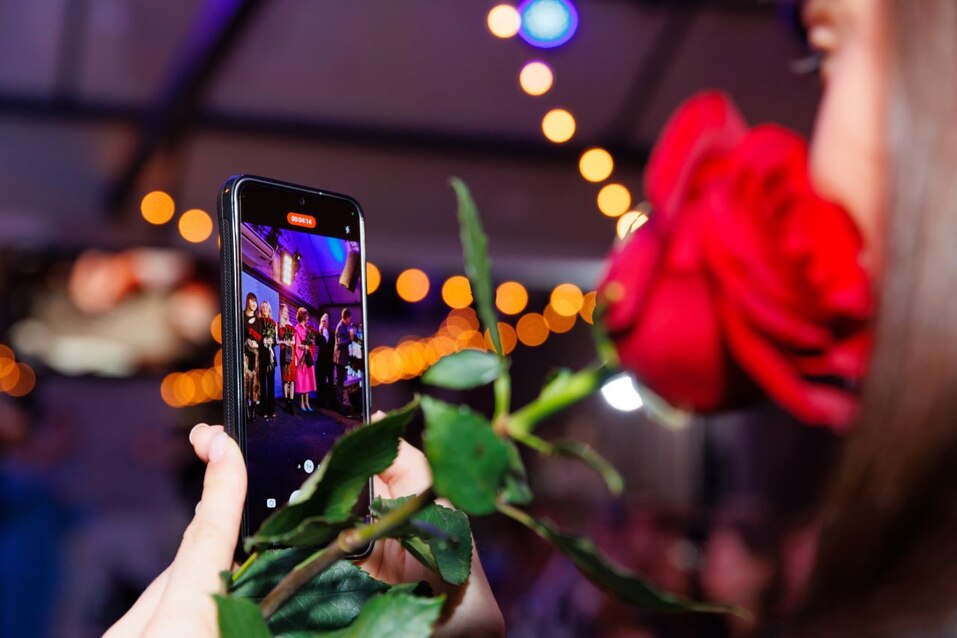 Атмосфера весны и тепла начиналась уже на входе: запястье каждой гостьи украсили цветочные браслеты от партнера события — свежие бутоны подготовили флористы салона «Цветочный Красноярск».
