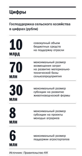 Вторым по представленности в системе грантовой господдержки в крае идет сельское хозяйство. Всего таких программ пять. Причем четыре из них направлены на стимулирование различных форм хозяйствования. Самые объемные среди них — это гранты на развитие материально-технической базы сельхозкооперативов. На эти цели они могут получить до 70 млн рублей. На развитие семейной животноводческой фермы власти готовы дать до 30 млн рублей. Молодые аграрии (работающие на рынке не больше года) могут рассчитывать на грант «Наш фермер», максимальный размер которого составляет 8 млн рублей. Также в крае действует программа «Агростартап», по которой выдаются гранты от 3 млн до 6 млн рублей. Стоит, правда, помнить, что по перечисленным программам (кроме «Агростртапа») от предпринимателя потребуется софинансирование в размере от 10% до 40%. Всего на господдержку аграриев Красноярского края в 2023 направят порядка 10 млрд рублей. Распределять их будет местный Минсельхоз.
