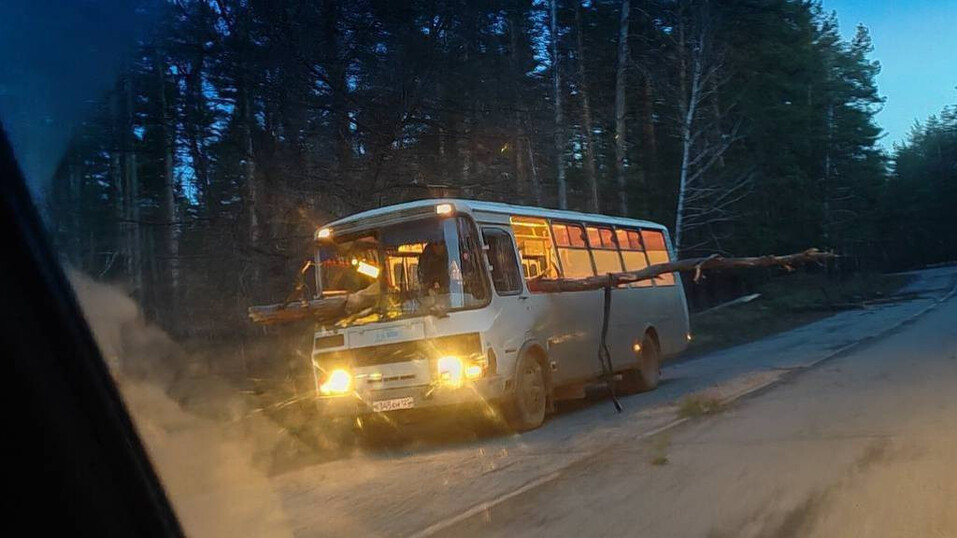В Бийском районе на трассе в автобус влетело дерево, обошлось без жертв.