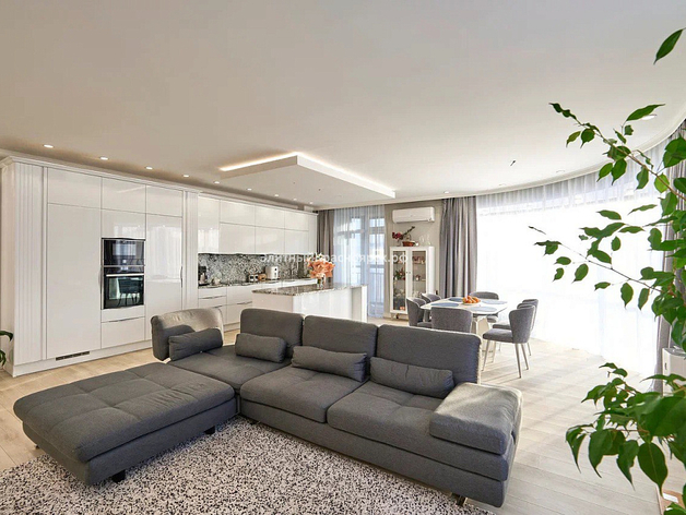 Сообщается, что в квартире предусмотрены три спальни, кухня-гостиная, два санузла. Общая площадь — 175,5 кв. м. Сделан дизайнерский ремонт премиум-класса, пол с подогревом. Будущему владельцу оставят мебель и всю встраиваемую технику.